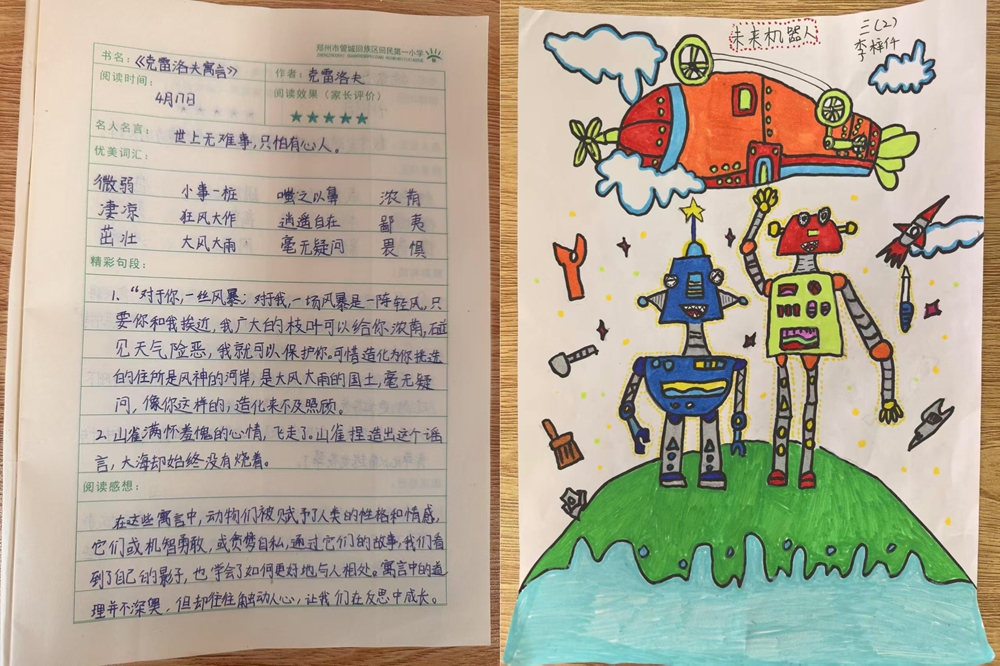 学生们用多元形式记录阅读旅程:工整的词句摘抄本里,凝结着对科学术语的精准捕捉;生动的读后感中,流淌着对自然奥秘的独特思考;精美的自然科学主题海报上,色彩与线条勾勒出他们心中的科学图景。这些成果不仅是阅读“输入”的见证,更标志着学习模式向“读写绘结合”的升级——孩子们在记录中深化理解,让阅读从单向吸收变为双向创造。